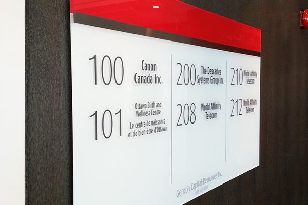 Graphix2K specializes in creating professional Company Directory signage for businesses in the Ottawa area. Whether for office buildings, corporate complexes, or commercial spaces, our directory signs provide clear, organized, and visually appealing solutions to help visitors easily navigate your premises. Designed to reflect your brand’s identity, these signs are both functional and stylish, ensuring a welcoming environment for clients and staff.